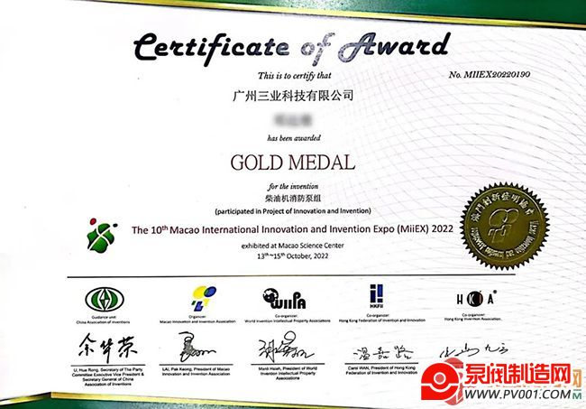 近日,第10届澳门国际创新发明展在澳门科学馆会议中心举行,共有千余件作品参赛。广州三业科技有限公司在发明展上展出了三业科技核心产品柴油机消防泵组,该产品配置了公司自主研发的柴油机水泵专用智能控制器,具有自动、手动、遥控等多种控制模式。最终,“柴油机消防泵组”作品凭借过硬的技术实力及技术创新在创新发明展中脱颖而出,斩获金奖!