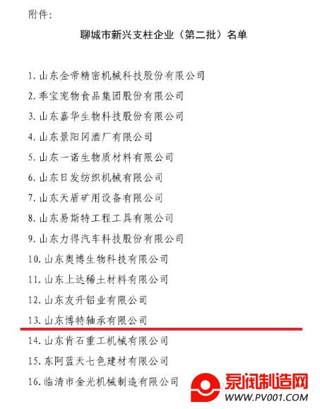 2022年12月9日,聊城市工业和信息化局向社会公示“聊城市新兴支柱企业(第二批)名单”,山东博特轴承有限公司榜上有名。