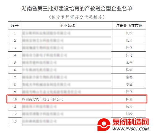 根据《建设产教融合型企业实施办法(试行》(发改社会〔2019〕590号)和《关于开展第三批建设培育的产教融合型企业申报工作的通知》(湘发改社会〔2022〕468号),经企业自主申报、市州初审推荐、专家评审和省发展改革委、省教育厅、省人力资源和社会保障厅等三部门联审,南方阀门成功入选湖南省第三批拟建设培育产教融合型企业名单。