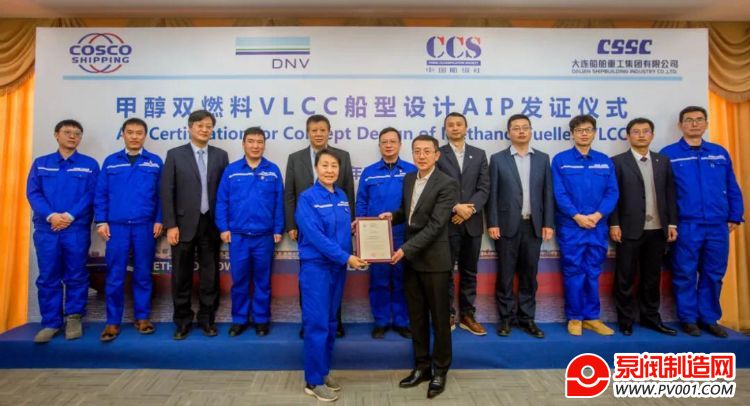 2月17日,由中国船舶集团旗下大船集团和中远海运能源运输股份有限公司联合开发的绿色甲醇燃料动力VLCC船型设计方案,获得了DNV和CCS两个船级社分别独立颁发的AIP原则性认可证书。
