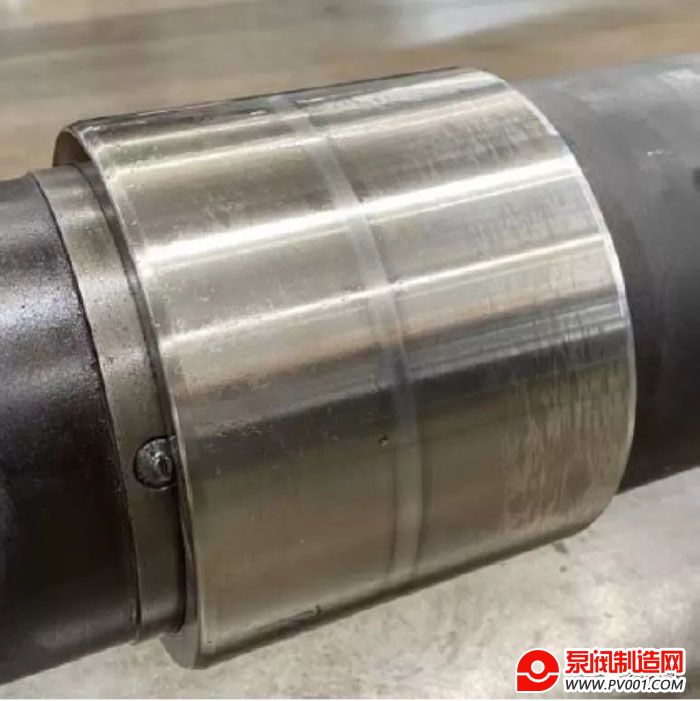 采用非同心分体式可倾斜轴瓦,这一结构不仅被公认为可以最大程度消除交叉径向电磁牵拉力的影响,而且允许每一块轴瓦在启停期根据所处位置形成的水膜情况进行独立的自我调节,最大限度地减少发生磨损的可能性。同时按照API规范,在轴套的轴向定位的部位使用螺钉定位,彻底锁住轴套,降低移位风险,增加可靠性。