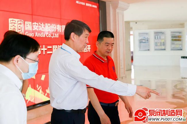 国安达股份有限公司董事长洪伟艺,公司副总经理、销售二部总经理常世伟,财务中心总监朱贵阳等陪同一行人参观了公司高新技术展厅,并介绍了公司建设发展的总体思路及创新成果,随后,双方就具体内容展开深入交流。