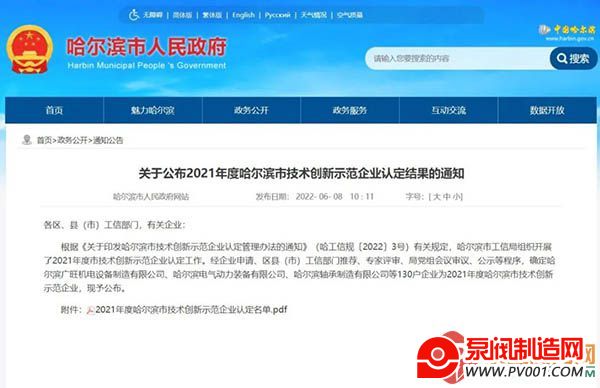 2022年3月,哈电阀门公司组织申报了哈尔滨市技术创新示范企业,经过平房区、哈尔滨市工信局层层选拔、联合推荐、专家评审,6月6日,获评哈尔滨市技术创新示范企业,并获得哈尔滨市发放的财政资金补助,进一步推进了研发创新发展,增强了核心竞争力,助推科技创新工作迈上新台阶,为公司全面实现高质量发展提供有效保障。