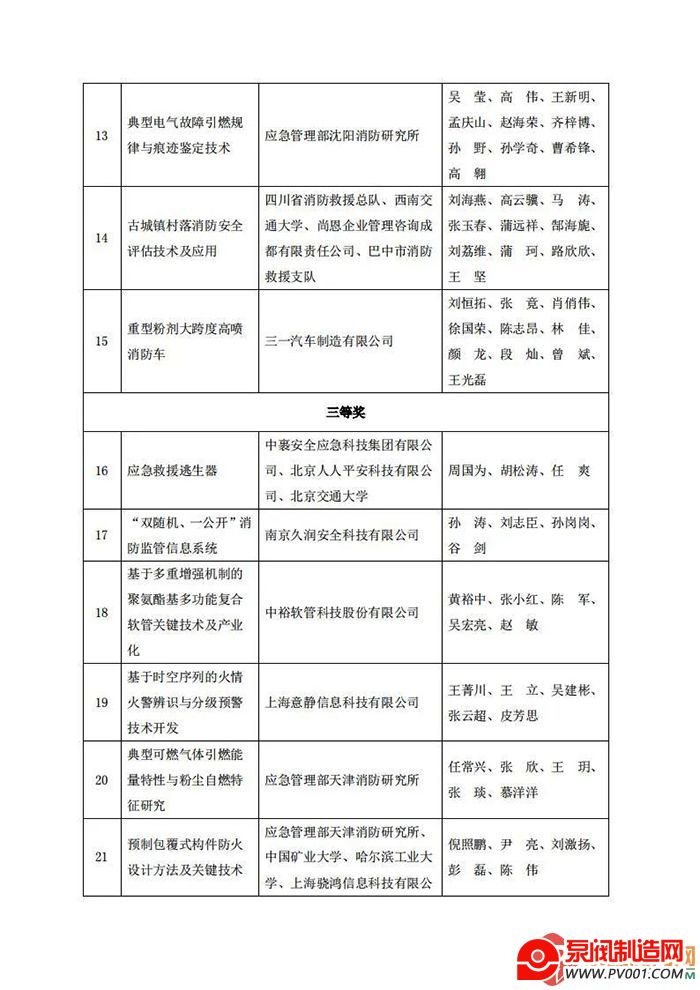 附件:第十二届中国消防协会科学技术创新奖获奖项目名单