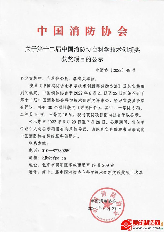 公示期自 2022 年 6 月 29 日至 7 月 28 日。公示期间,任何单位或个人对公示项目有实质性异议,请以真实身份和书面形式向中国消防协会科技服务部提出。