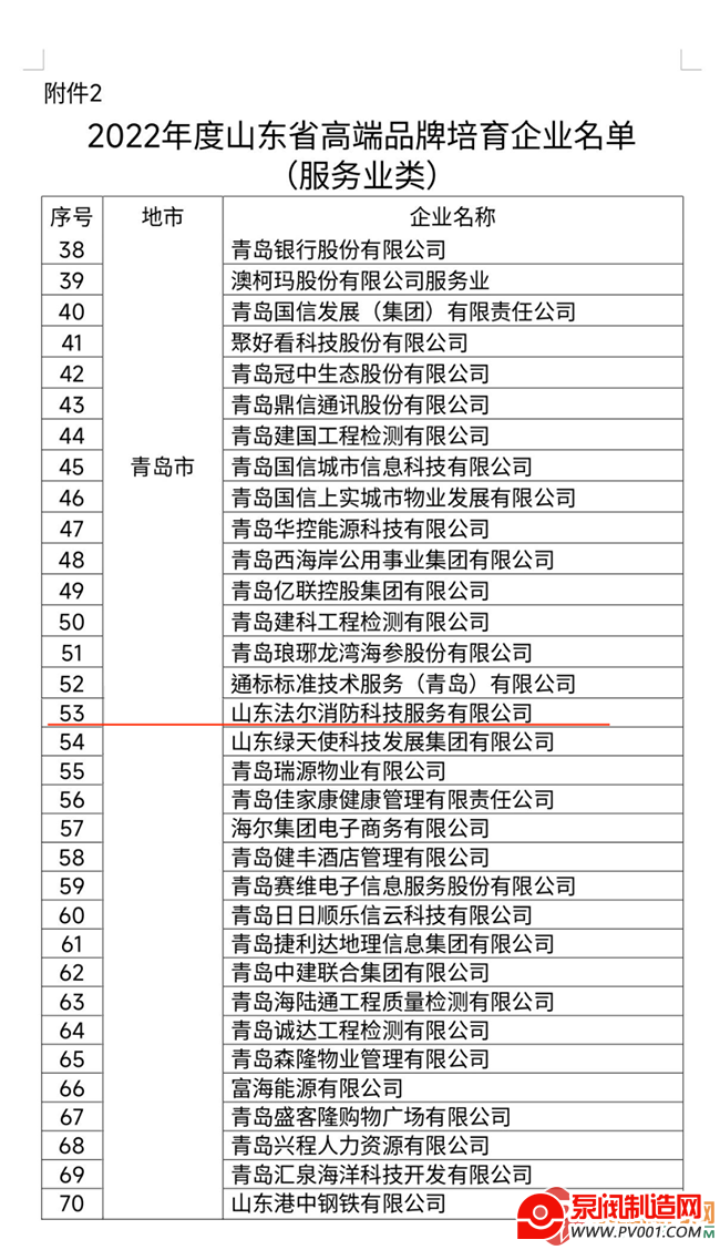 7月13日,2022年山东省“中国品牌日”活动在聊城市举办,山东法尔消防科技服务有限公司入选2022年度山东省高端品牌培育企业名单。
