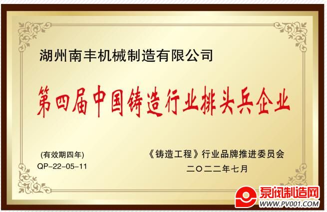 湖州南丰机械以过硬的综合实力被授予“第四届中国铸造行业熔模铸造分行业排头兵企业”荣誉称号。获得该荣誉是中国铸造协会对南丰机械创新、绿色理念的高度认可,也是对南丰机械熔模精密铸造技术水平和行业地位的充分肯定。