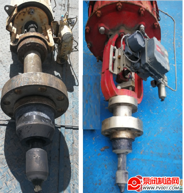 甲醇运行部气化工艺采用GE徳士古水煤浆工艺,高压闪蒸系统黑水角型调节阀系国外采购,介质为高压黑灰水,最大关闭差压6.33MPa(G),温度246℃,使用九个月后,调节阀陆续出现流量波动无法调节的现象,解体检查发现阀芯及其可调区域、阀座、下阀套均有严重冲刷磨损,导致调节性能下降,影响装置安全稳定运行。