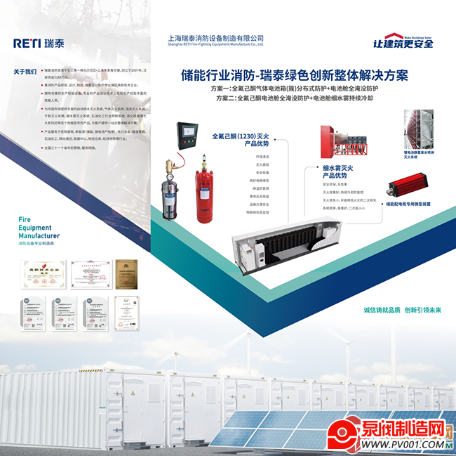 瑞泰消防为储能行业推出全新消防整体解决方案,用领先的消防技术为储能系统提供消防安全保障,为行业发展保驾护航。