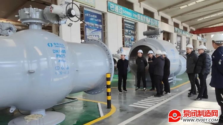 领导团先后参观了全焊接机器人生产线、生产车间、成品库、性能实试验室等,了解公司发展历程、技术优势。在生产车间,全焊接球阀自动生产线、通径碳钢Y型过滤器全自动生产线等多种设备吸引了领导团目光。通过近距离观察,驻足详观公司有关供热产品,更直观地感受河北同力在产品性能及质量上的严格把控和强大的生产能力。