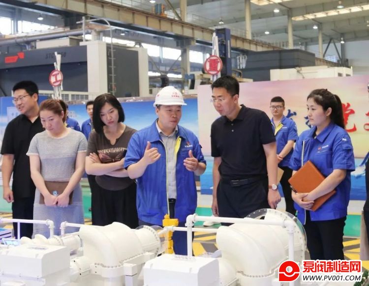 在王晶的陪同下,陈琦一行先后参观了企业展厅、定子车间、转子车间。在参观过程中,对沈鼓集团的企业文化、生产流程以及技术水平做了详细了解。