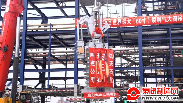 6月18日,中石化120万吨/年乙烯项目超大口径裂解气阀在天津经开区南港工业区一次吊装成功,并顺利安装就位。该60英寸超大口径裂解气阀北京航天石化技术装备工程有限公司研制,配套南港乙烯项目首台国产20万吨/年单炉膛液体原料裂解炉使用,是大型乙烯装置的关键设备。
