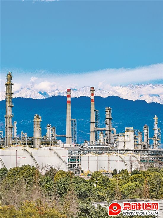 | 掩映在四川白水河国家级自然保护区龙门山脉下的四川石化厂区。李劭燚摄 |