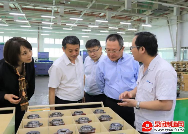 在洛轴公司党委书记、董事长王新莹的陪同下,刘加隆一行实地参观了航空精密轴承国家重点实验室、特大型轴承事业部、洛轴科技及精密轴承事业部等生产现场,详细了解了各产品板块发展状况及相关产品国产化替代等情况。