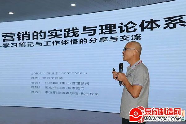 门集团高级工程师田世忠为大家作“阀门营销的实践与理论体系”学习笔记与工作感悟的分享与交流,课程围绕营销八道、营销八术展开,帮助大家实现绩效、利润的双增长,推动企业进行有效的国内营销管理,助力永嘉县泵阀企业转型升级。