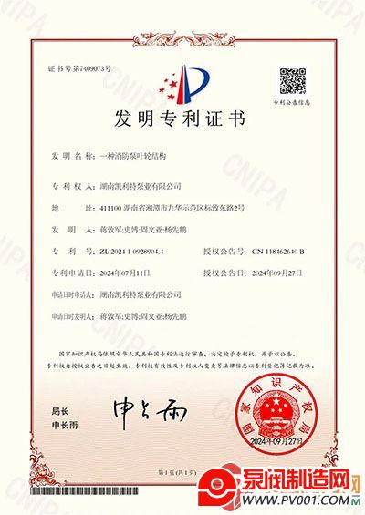 近日,凯利特泵业“一种消防泵叶轮结构”成功获得国家专利局授权。这标志着凯利特泵业在消防泵叶轮结构及技术领域又迈出了坚实的一步。