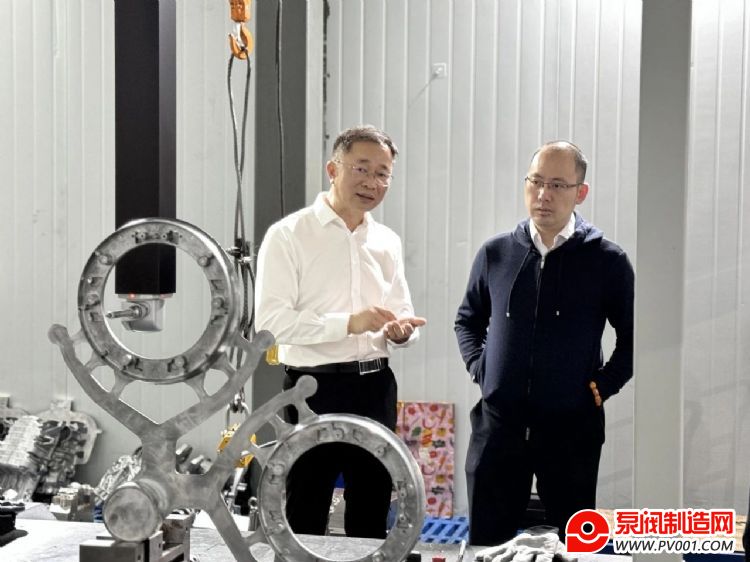 随后,竺董一行参观了公司的数字化车间、详细了解了生产工艺流程、数字技术的运用、技术人员的配备及设备维护管理等,现场观看了模具的生产及制作。同时,他们对技术人员的专业素养和设备维护管理的精细程度给予了高度评价。