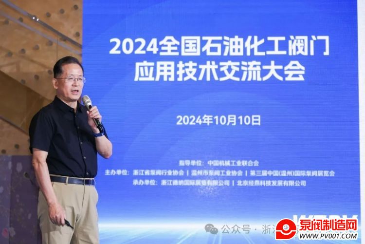 在广阔的工业阀门竞争格局中,我国油气、化工等领域自主替代的工业阀门尚处于起步阶段,大型油气、化工项目的关键阀门进口依存度比例很高,在石油化工高质量转型的大趋势下,是一个对中国阀门制造业的机遇,也是挑战。为此,由中国机械工业联合会、永嘉县人民政府指导,浙江省泵阀行业协会、温州市泵阀工业协会、第三届中国温州国际泵阀展览会主办的“2024全国石油化工阀门应用技术交流大会”于10月10日在温州永嘉召开。会议邀请了永嘉县委常委副县长龚涧剑、中国通用机械工业协会副会长张宗列、合肥通用机械研究院有限公司教授级高级工程师黄明亚等领导和专家,吸引了来自全国各地泵阀企业技术人员三百余人参加会议。