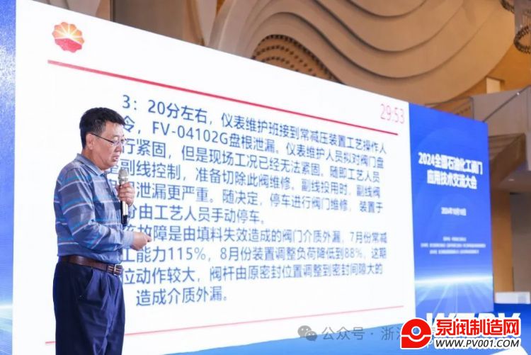 中国石油天然气股份有限公司管理专家赵峻松作“因阀门故障引起装置停车后的反思”主题演讲
