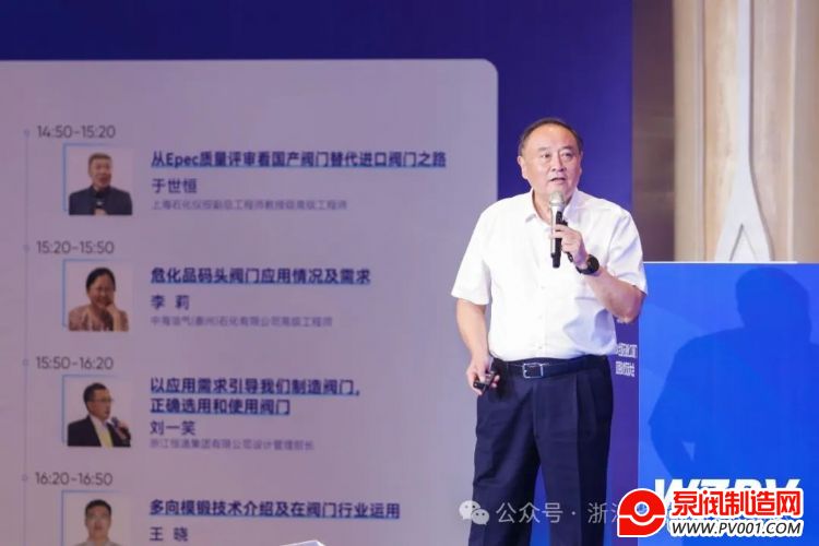 上海石化仪控副总工程师教授级高级工程师于世恒作“从Epec质量评审看国产阀门替代进口阀门之路”主题演讲