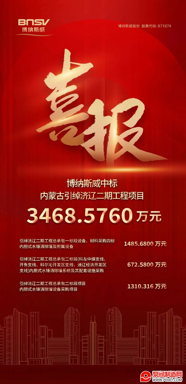 喜报!博纳斯威中标内蒙古引绰济辽二期工程项目3468.5760万元。