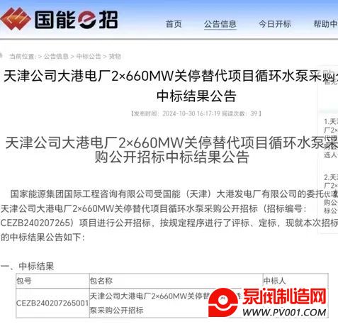 您当前的位置:中国泵阀制造网 > 资讯 > 行业动态 > 沈工泵中标“国能大港电厂2×660MW关停替代项目”高扬程双速高效海水循环水泵