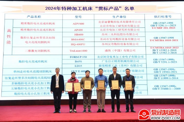 分会副理事长单位、泰州特种加工机床行业协会秘书长陈阿顺宣布了2024年“贯标产品”名单,分会理事长吴强为获得“贯标产品”称号的机床生产企业代表授牌。