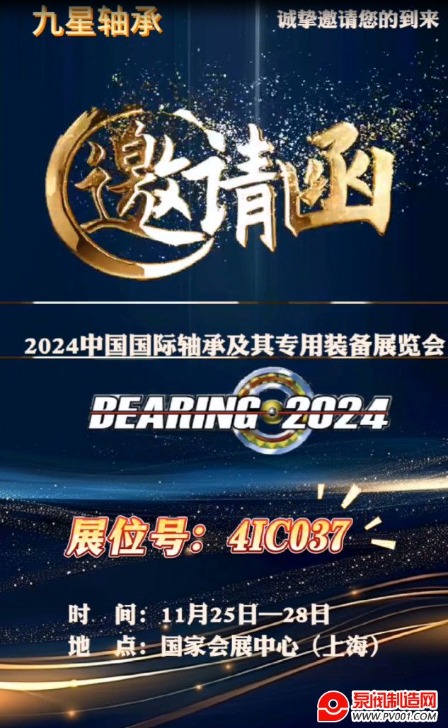 由中国轴承工业协会主办的第十九届“2024中国国际轴承及其专用装备展览会”将于2024年11月25日至28日在国家会展中心(上海)盛大举办。临清市九星轴承科技有限公司诚邀您莅临41C037展位参观交流、洽谈合作!