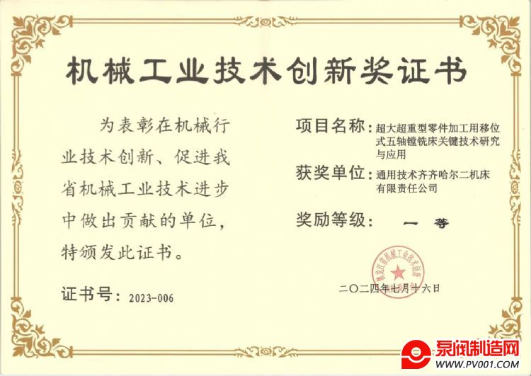 12月7日,黑龙江省机械工业技术协会六届三次理事扩大会议暨技术年会在哈尔滨召开,会上宣读了“关于公布2023年度‘黑龙江省机械工业技术创新奖’获奖项目的通报”,我公司超大超重型零件加工用移位式五轴镗铣床关键技术研究与应用获黑龙江省机械工业技术创新一等奖。