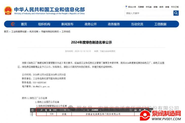 近日,根据中华人民共和国工业和信息化部的公示,按照《绿色工厂梯度培育及管理暂行办法》有关要求,经省级工业和信息化主管部门推荐及专家评审,屯阀股份成功入选2024年度国家级新培育的绿色工厂。