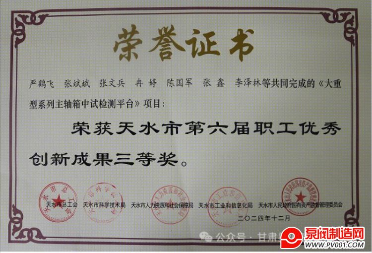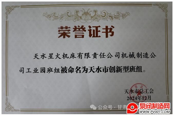 岁尾年末,星火数控公司喜报频传。由严鹤飞、张斌斌等7人共同完成的《大重型系列主轴箱中试检测平台》荣获天水市第六届职工优秀创新成果三等奖;星火数控公司机械制造分公司工业园班组被天水市总工会命名为“天水市创新型班组”;王东鹏、赵建云、吕晓宏、王玉葵、李文奎、王东升6人被授予“天水市技术标兵”称号。