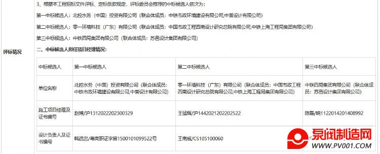 第二中标候选人:零一环境科技(广东)有限公司(联合体成员:中国市政工程西南设计研究总院有限公司,中铁上海工程局集团有限公司),投标报价:123174671.00元;