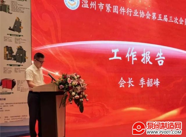 紧接着,温州市紧固件行业协会会长季韶峰代表第五届理事会,向大会作《温州市紧固件行业协会第五届三次会员大会工作报告》。报告中,季韶峰会长全面回顾了过去一年协会在促进产业升级、加强行业自律、维护会员权益等方面所取得的显著成效,同时对未来一年的工作计划进行了展望,强调将继续深化服务职能,推动行业高质量发展。