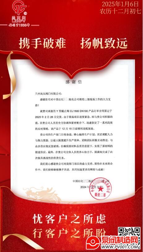 这封感谢信,对于我们而言,意义非凡。它不仅仅是对我们此次工作的认可和肯定,更是对我们未来发展的激励和鞭策。它充分彰显了我司在面对紧急订单时的快速响应能力、高效的组织协调能力以及强大的团队合作精神,有力地展示了兰高阀作为一家专业阀门制造企业的雄厚实力和责任担当。