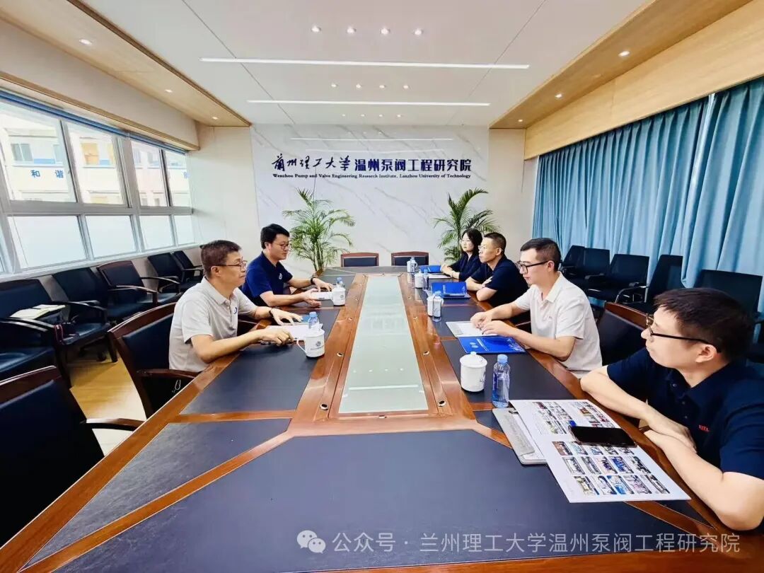 2025年10月16日上午,浙江伯特利科技股份有限公司总经理黄聪策、技术总监尚玉来、人资行政总监虞秋华、人事经理柏旭一行到访兰州理工大学温州泵阀工程研究院,与研究院直属党支部书记张伟政、副院长权辉举行座谈交流。