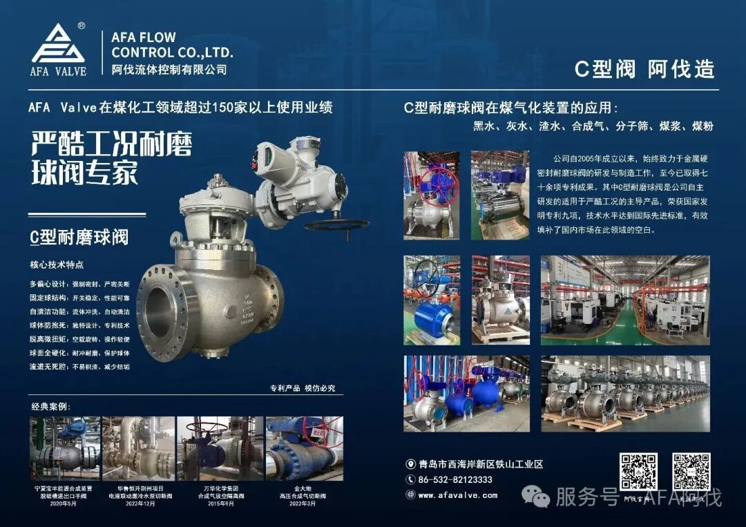 本届年会以“创新驱动·绿色发展”为主题,聚焦气体净化合成技术的节能降耗、工艺优化及智能化升级。阿伐流体凭借在耐磨球阀以及专利产品C型耐磨球阀领域的深厚积累,通过技术报告、产品展示与实地交流,进一步巩固了其在气体净化合成工况阀门市场的领先地位。未来,公司将继续以客户需求为导向,以技术创新为引擎,为煤化工、合成气等行业的绿色转型提供更高效、更可靠的阀门解决方案。