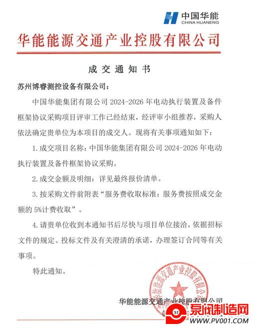 恭喜苏州博睿测控设备有限公司在激烈的竞争中脱颖而出,顺利通过了中国华能集团有限公司2024-2026年电动执行装置及备件框架评审,荣获合格供应商资格,进入华能商城!此次成功入围,不仅是一个荣誉,更是苏州博睿又一个新的起点,公司将继续致力于提升产品质量和技术创新。同时我们也深知,此次成功入围的背后,是博睿人坚持不懈的努力和客户的支持与信任。