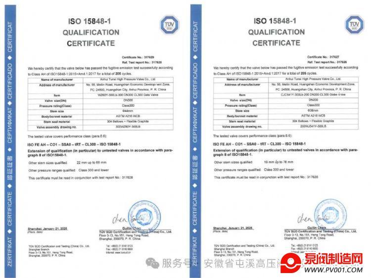 近期,安徽省屯溪高压阀门股份有限公司在波纹管闸阀以及波纹管截止阀产品的生产与检验过程中,严格遵循了国际标准化组织发布的ISO 15848-1:2015+A1:2017标准,对产品的低泄漏性能进行了型式试验。在这一系列的测试中,我们的波纹管产品成功地通过了205次的开关动作检测,充分证明了其符合上述国际标准的严格要求。