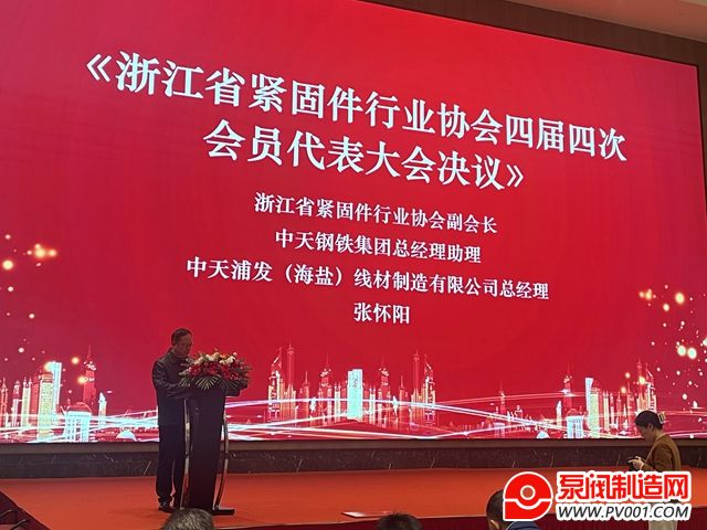 浙江省紧固件行业协会副会长张怀阳宣读《浙江省紧固件行业协会四届四次会员代表大会决议》