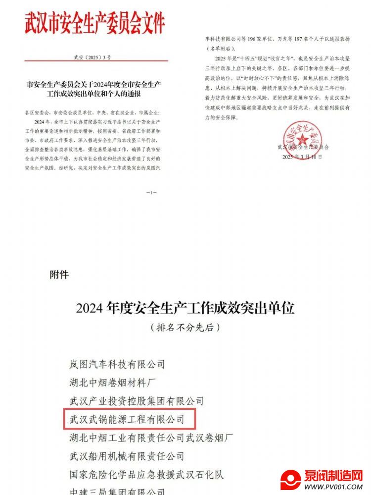 近日,武汉市安全生产委员会授予武锅能源“2024年度安全生产工作成效突出单位”荣誉称号。