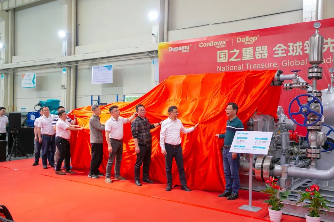 在专家团与企业高管的共同见证下,覆盖红色绸布的超大型高压隔膜泵正式揭幕。其精密的设计结构与智能化控制系统引发全场瞩目,彰显德帕姆在流体装备领域的深厚积淀。