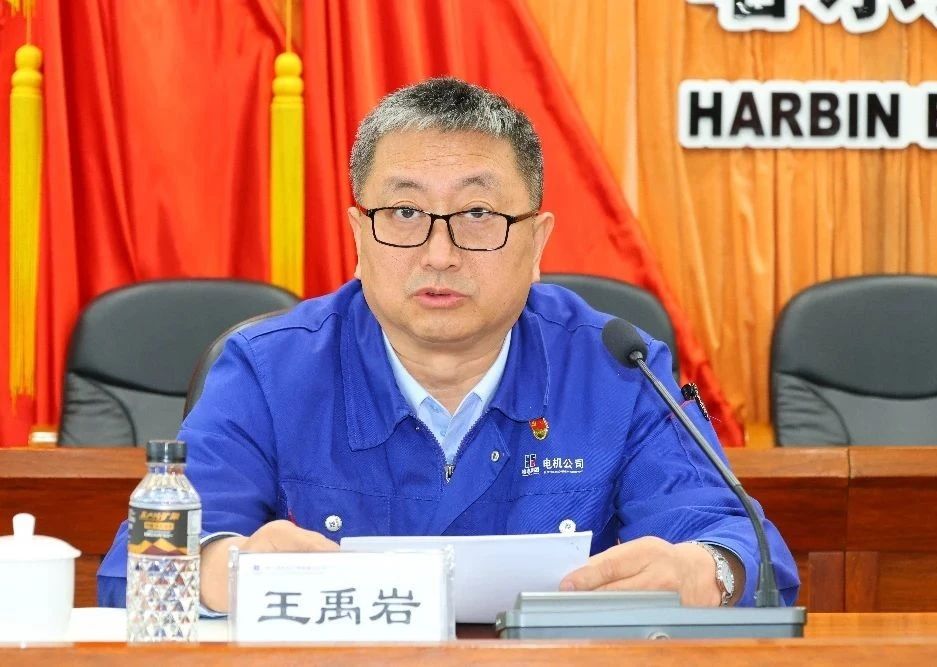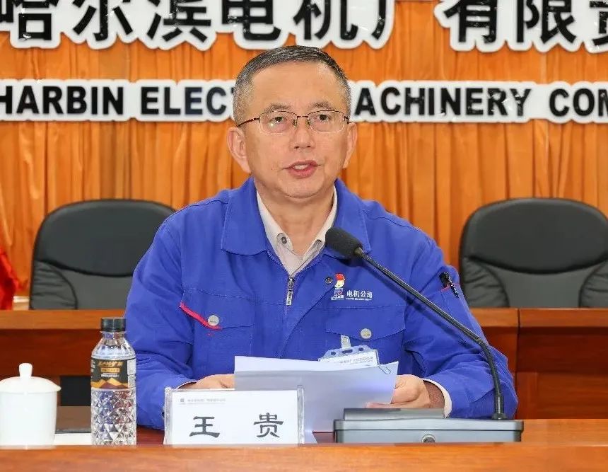 哈电电机党委书记、董事长王贵主持会议并讲话。