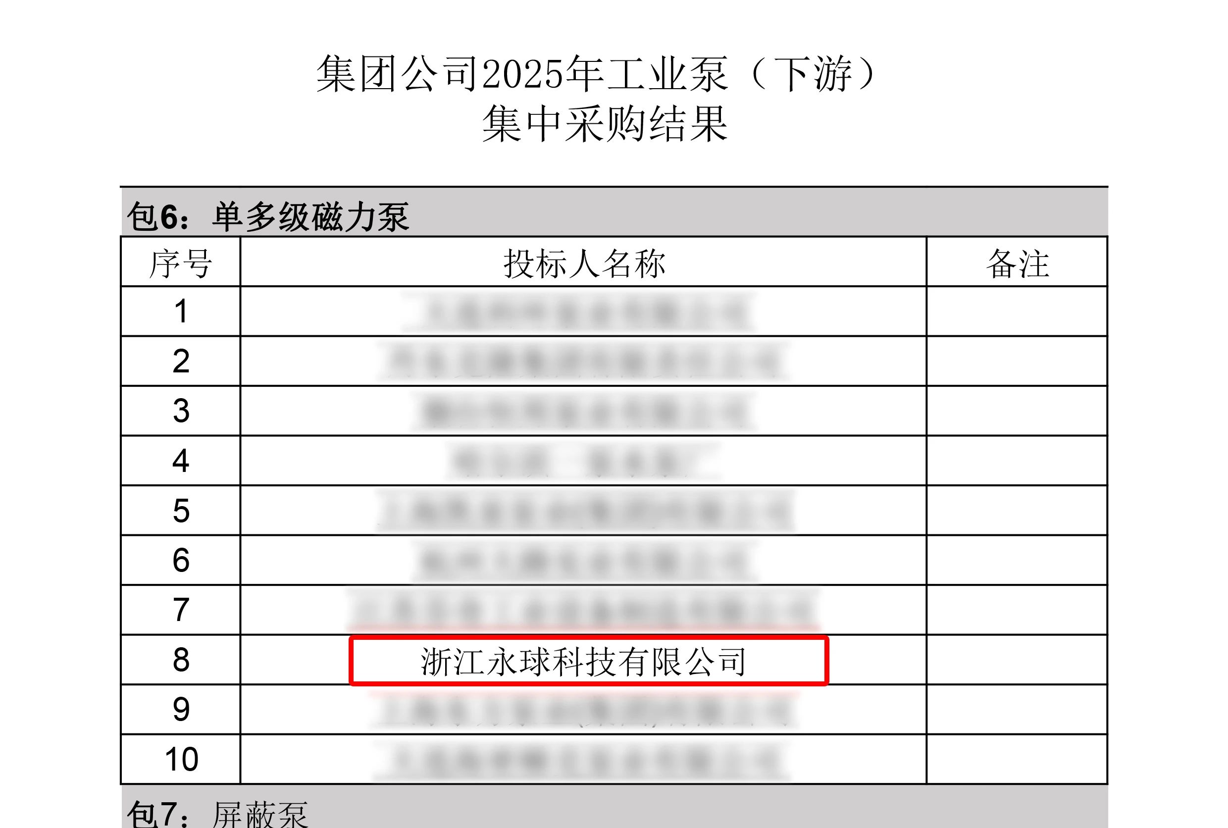 近日,中国石油天然气集团有限公司正式公布2025年工业泵(下游)集中采购项目定商定价结果,浙江永球科技有限公司凭借卓越的综合实力,成功中标标包6:单多级磁力泵标段。此次中标标志着永球科技在高端工业泵领域的核心竞争力和市场影响力再获权威认可,同时也为深化与大型央企合作、服务国家能源战略奠定了坚实基础。