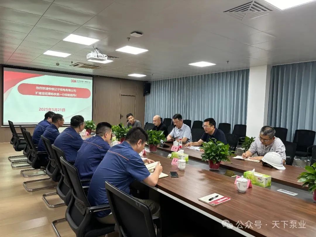 5月21日,中核辽宁核电有限公司(以下简称"辽宁核电")扩建总经理陈秋良率队赴长沙水泵厂有限公司(以下简称"长泵")调研交流。长泵公司总经理王京亮、副总经理钟天炜等领导出席会议。