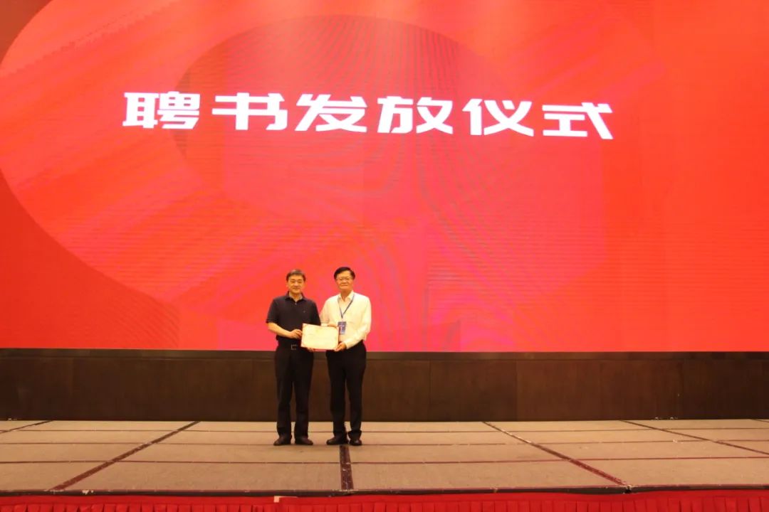 浙江省经信厅一级调研员朱涛(左)为联盟新当选主席蔡正雄颁发聘书