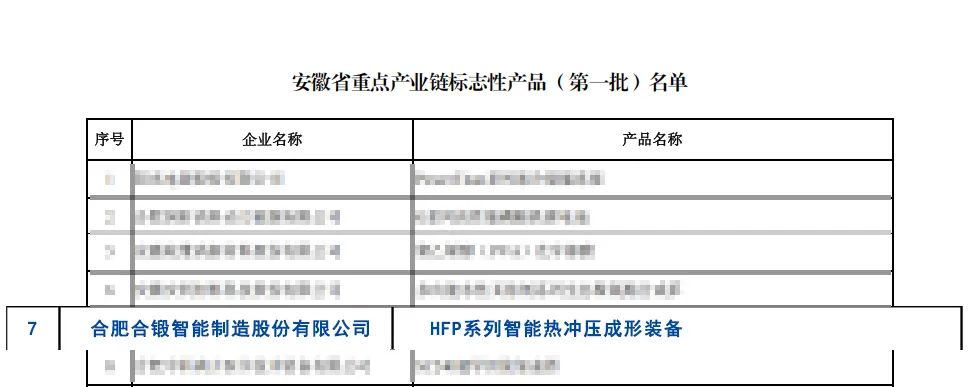 近日,安徽省工信厅公布了安徽省首批重点产业链标志性产品名单,合锻智能自主研发的HFP系列智能热冲压成形装备荣耀登榜,彰显了企业在高端装备制造领域的创新实力与产业引领地位。
