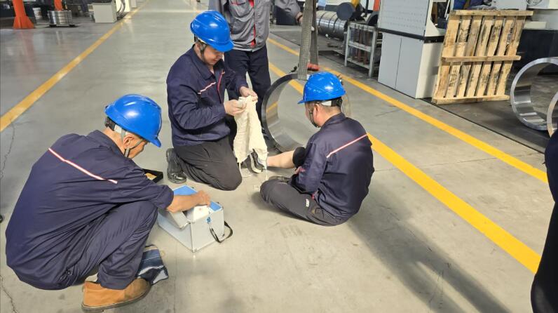 此次应急演练高度还原真实险情,从快速响应到物资调配,各环节衔接顺畅、处置得当。演练特别设计了贴近车间作业实际模拟场景,操作工肖伟在吊运套圈作业时,不慎被坠物擦伤。这一情景设置针对性强,具有显著实操价值。事故模拟发生后,现场警报立即触发,车间应急指挥中心迅速激活应急预案。各应急小组快速到位,有序展开救援,物资保障组第一时间将医药等救援物资送达现场;医疗组立即对伤员肖伟实施伤口处理和包扎;警戒组快速设立隔离区,组织人员疏散,有效防范次生事故。演练全程组织严密,各小组职责清晰、协同高效,充分展现了团队应急处置水平。