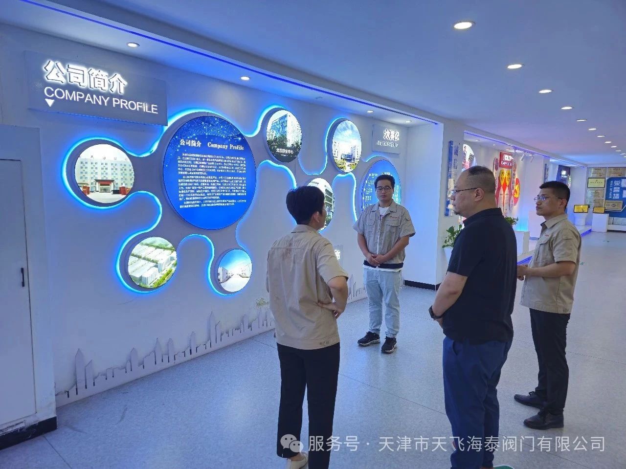 近日,天津市高新技术企业协会产业发展研究院院长与天津市节水产业协会秘书长一行莅临天飞海泰阀门阀门考察指导。双方围绕节水产业技术创新、资源协同及战略合作展开深度交流,我司总经理王小京及业务部经理张孝通全程陪同接待。