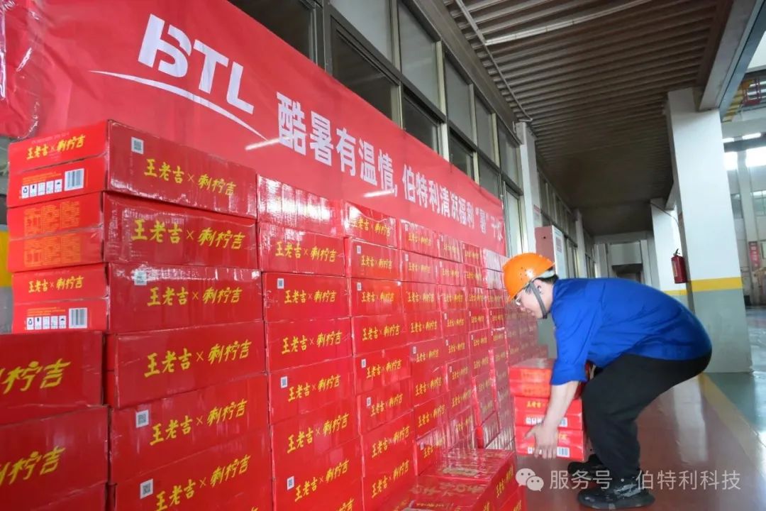 近日,浙江伯特利科技股份有限公司精心组织了一场贴心的送清凉活动。在这个酷暑难耐的季节里,公司为每一位坚守岗位的一线员工准备了一箱王老吉凉茶,为他们送去一份清凉与关怀。