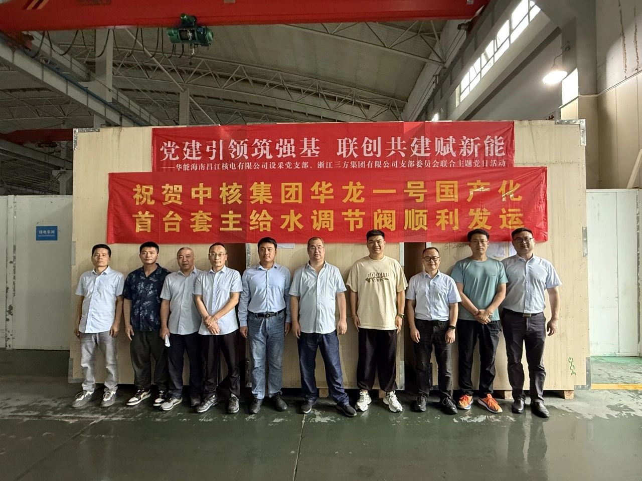 2025年6月24日,载有6台主给水及旁路给水流量调节阀的卡车缓缓驶出制造厂,在中国核电工程有限公司设备成套中心与华能昌江业主单位相关人员的共同见证下,顺利发运,奔赴昌江核电现场。这一事件标志着昌江3号机组甲供阀门的供货工作打赢了收官之战,为热试等重大工程节点提供了有力保障,也标志着华龙一号关键调节阀实现了“国产化”和“快速供货”的双突破。